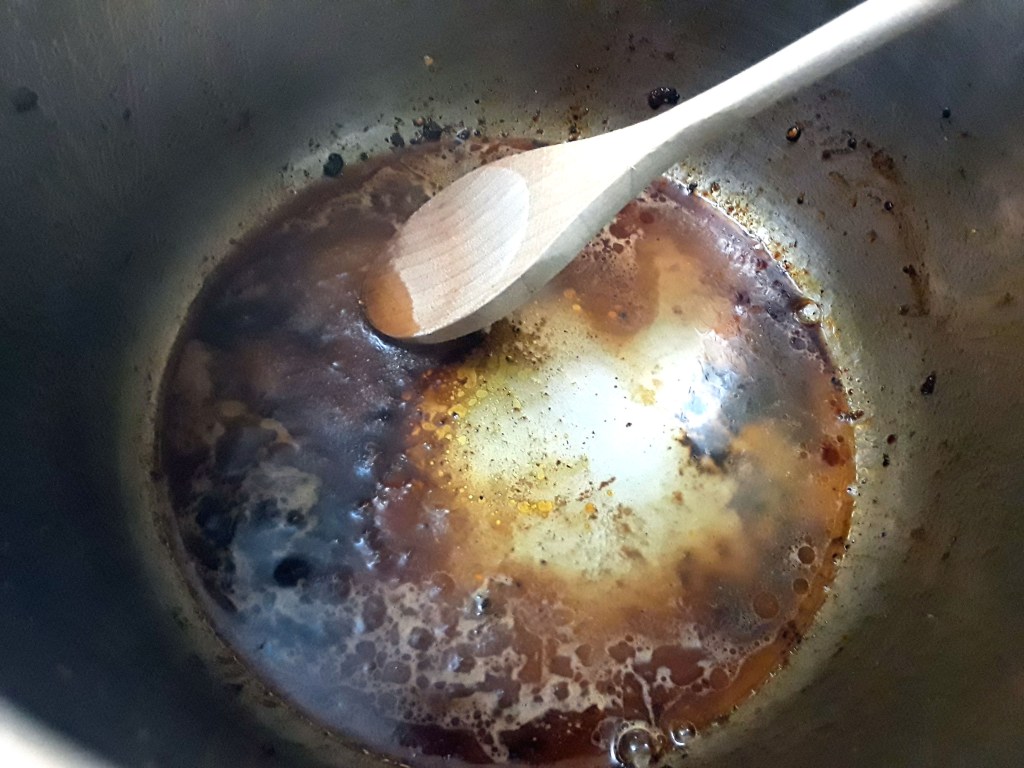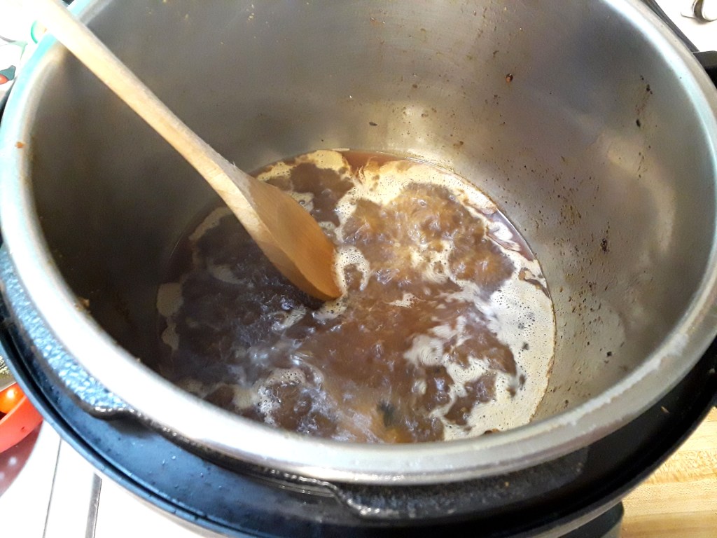 5. Now add the remaining broth, Worcestershire sauce and the liquid smoke.