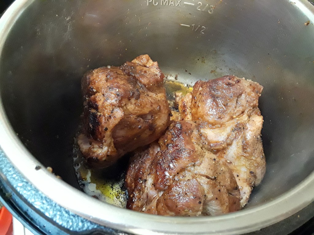 2. Rub the spiced seasoning all over the pork. Set aside to marinate about 10 minutes or so. In the meanwhile, turn on the pot to the sauté feature to begin heating the pot.