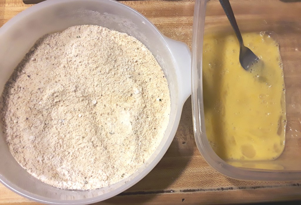 Breadcrumbs and egg mix