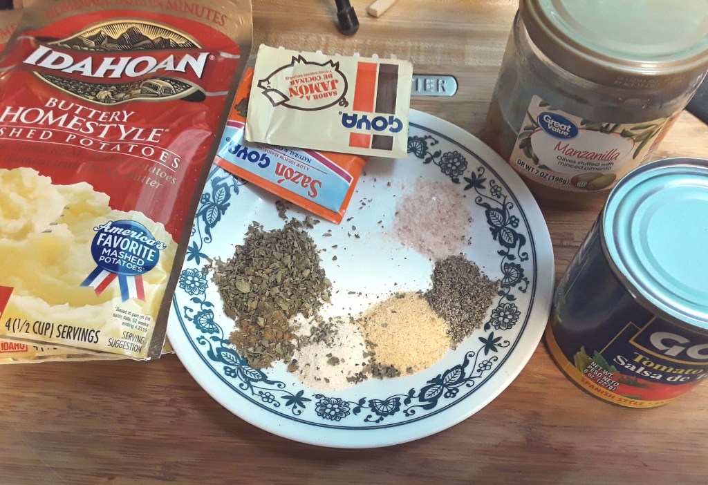 I’m a fan of stuffed food that is deep fried with a crispy crust. Growing up in New York, they had places where you can get some tasty fried treats on demand. However, we know eating deep fried foods isn’t the healthiest on the planet and some of us (like me) have to watch how I eat. But thanks to the air fryer, it makes eating some of my favorite food way easier. I’ll admit that tastes are a bit different, but not by much. If you cook it the right way, you can almost get that deep fried goodness. Relleno de papa has always been a favorite. It is potato balls stuffed with a meat mixture. I did take a short cut with the potatoes because: 1. I didn’t have enough and 2. I have quite a few instant mashed potatoes packets on hand. I know some people would be remiss with using prepackaged potatoes, but I think they work in a pinch when nothing else is available. With a few modifications, I think I came up with a way to have the best of both world’s in a short amount of time. Here’s my take on rellenos de papa. Serves 4-8.