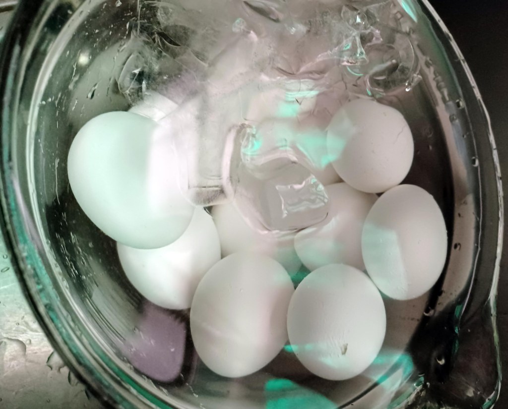 1. When cooking the eggs in the pressure cooker, add 1 cup of water to the pot. Using the trivet, add eggs as you see above. Set time to cook for 5 minutes and let it naturally release for 5 minutes once it’s done. If you make them on the stovetop, depending on the size of the pot, fill about 2/3 up with water and boil in high heat. While boiling, gently add the eggs, reduce to medium heat and cook for about 10 minutes. Once done, remove the eggs and place in a bowl of ice water to stop the cooking.