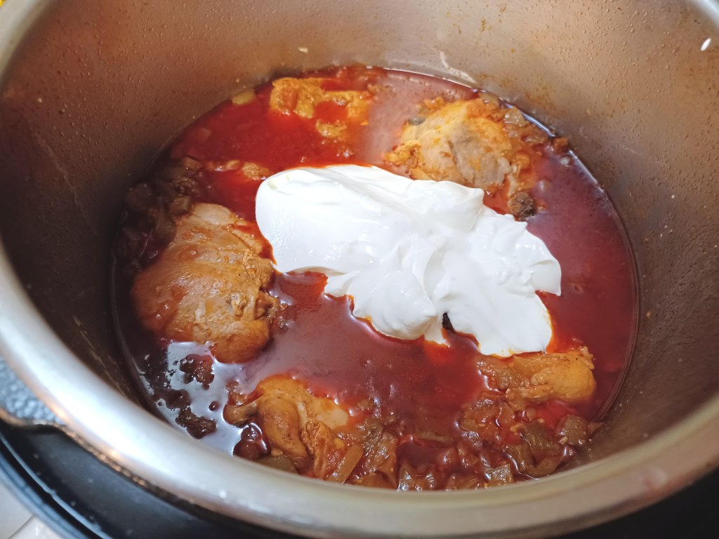 Welcome back and thank you so much for stopping by. Having never had this type of chicken, when I saw it being made, it looked simple and tasty. It was made on stove top and took about 45 minutes to completely cook. Since I have my instant pot and didn’t want to waste any extra time, I pressure cooked it in 1/2 the time. Still came out tender and delicious. Here’s my version on this Hungarian dish. Serves 4-6 people.
