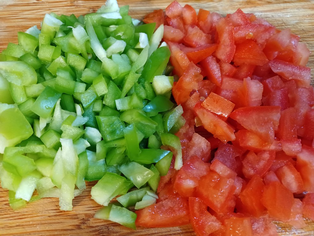 2. Add onion and peppers and cook for 2-4 minutes. If you need to add a little oil or broth, you can to moisten up the veggies. I found that mine needed a little bit.