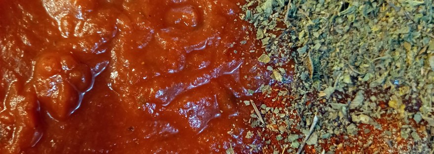 I love making home made pizza which includes making the sauce and shredding my own cheese. While there are many different recipes for pizza sauce out these and while some people prefer taking their time with the cooking the sauce, I find that this easy method I employ gives the sauce a pretty good taste considering it isn’t cooked. Here’s my take on easy pizza sauce. Makes around 21 oz. of sauce, enough to cover one large sized pizza, which you’ll find here.