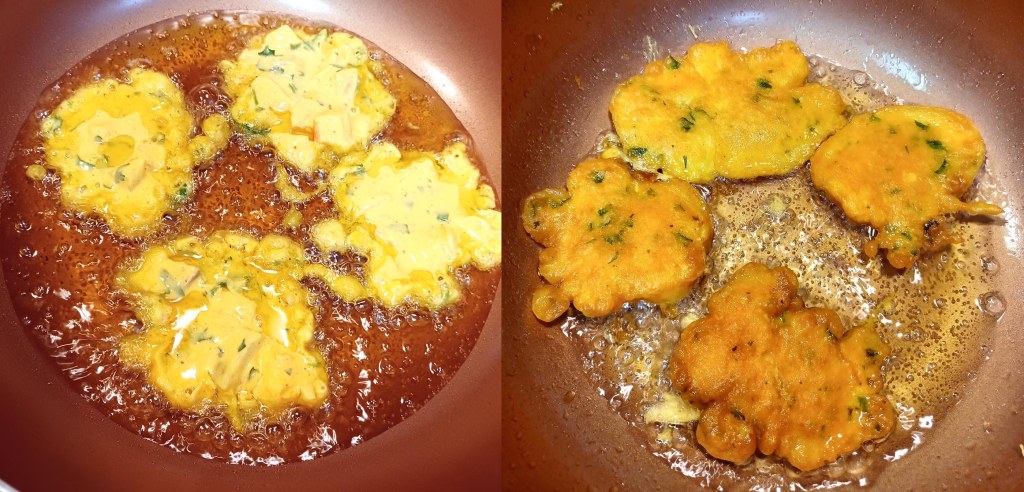2. Add enough oil to cover the bottom of a non stick pan if you don’t want to deep fry, which is what I did over a medium heat.