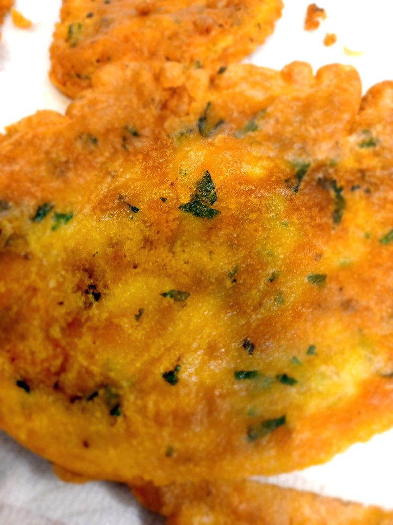 These fritters are quite tasty. Many recipes for this calls for using salted codfish, so you need to go thru a process to remove the salt. I went the easier route and used frozen individually packaged frozen codfish that isn’t as salty as fresh. I tried making these in an air fryer but they didn’t come out as tasty as when it’s oil fried. I know some people don’t like frying in oil but if you use good and healthy oils, you should be fine. I fried them in a small amount of oil instead of deep frying. This recipe yielded about 24 fritters. You can easily crisp them up in an air fryer or toaster oven. Here’s my process: