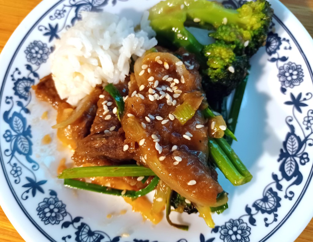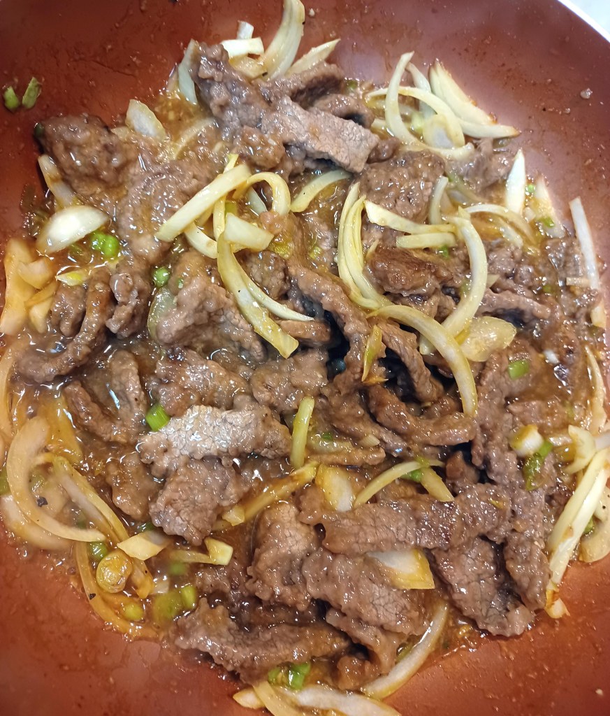 I love Mongolian beef but you know it always seems to be missing something when you buy it already made. I researched a few recipes and found one that’s very simple yet flavorful. I omitted the red chili’s in this version (because I have kid that isn’t fan of spicy foods yet) but this version came out very tasty and I could spice up my side of the dish after I cooked it. Here’s my process. Serves 3-4 people.