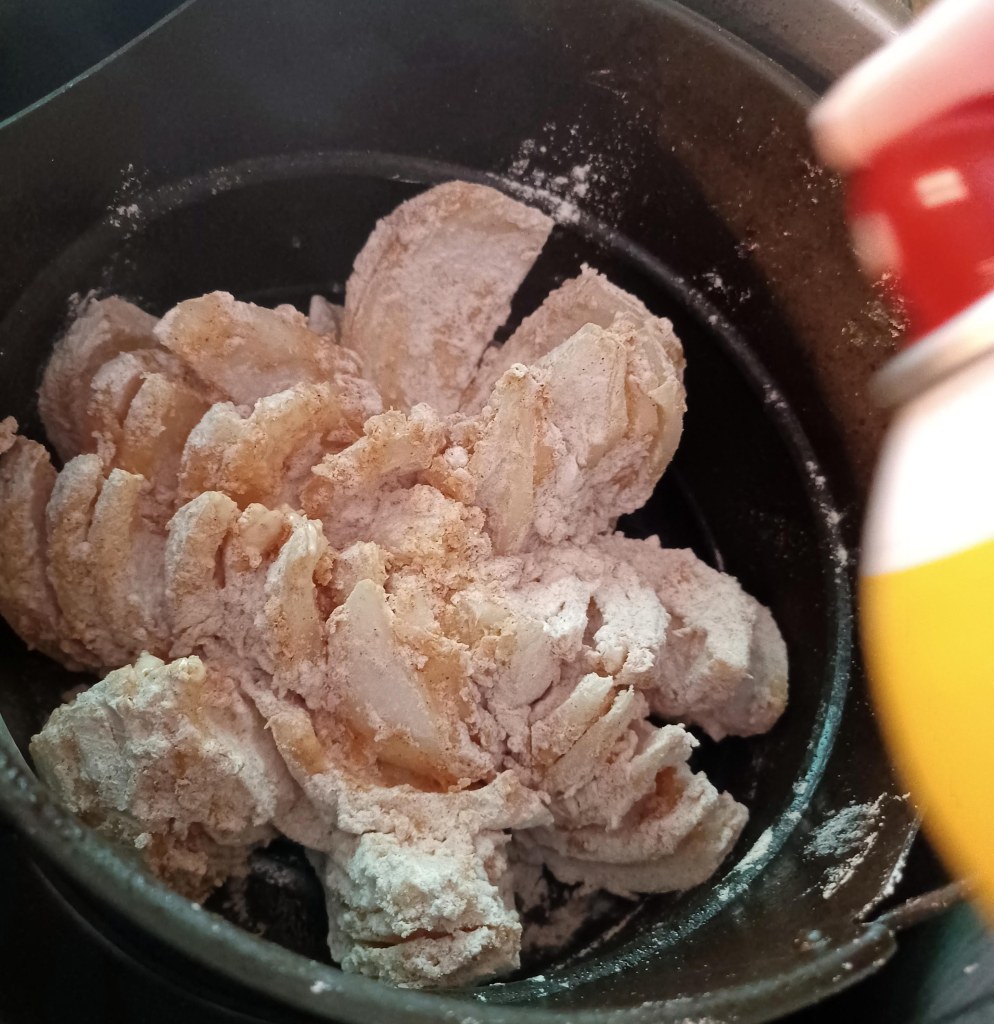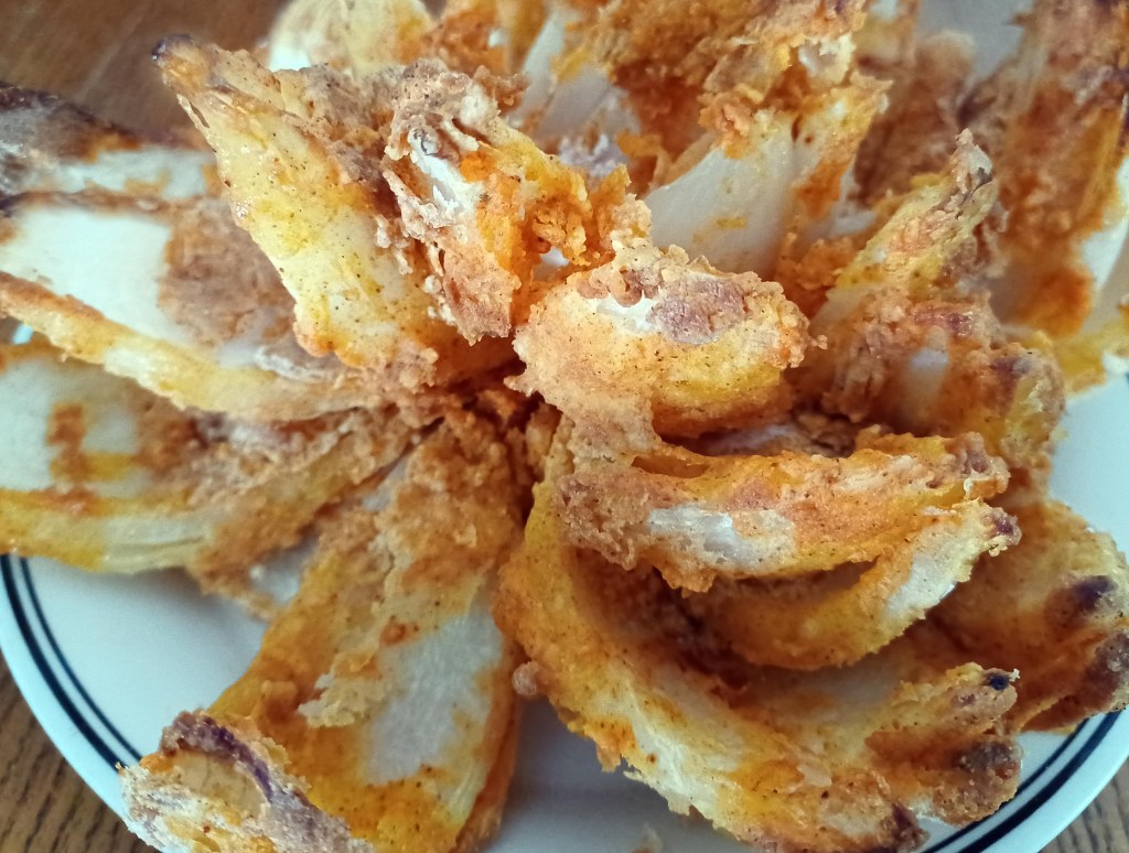 Serve with dipping sauce. Adding the spray really helps to make it crispy and making the sauce ahead of time allows for the flavors to marry together, making taste even better. So if your a fan of the blooming onion but want to cut out the excess oils, I hope you give this a try. Thank you for stopping by Enjoy and Buen provecho!! 😊